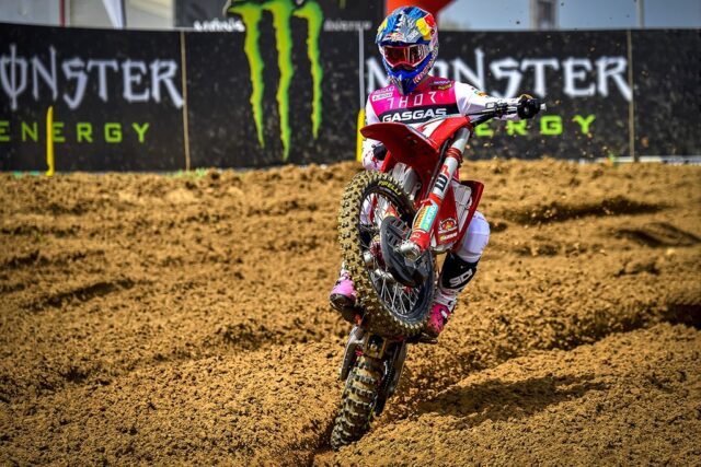 Il pubblico era già stato riscaldato da una brillante vittoria per un altro eroe locale, Daniela Guillen sulla sua RFME GASGAS MX Junior Team, e hanno fatto un rumore incredibile per lei mentre vinceva la gara inaugurale della stagione nel Campionato del Mondo di Motocross WMX Women’s. Poi il primo incontro EMX250 ha visto una grande battaglia che ha portato alla vittoria per il pilota del team Beddini GASGAS MX Juniors Valerio Lata dell’Italia.