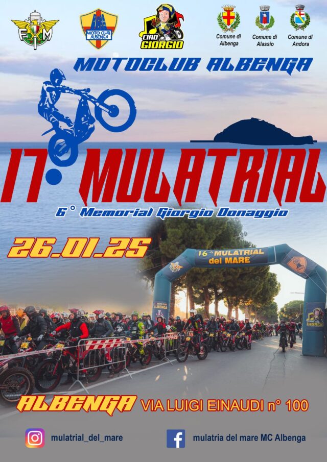 Albenga si prepara ad accogliere la 17a edizione della Mulatrial del Mare, un evento imperdibile per gli appassionati di moto da trial, in programma il 26 gennaio. Organizzata dal Moto Club Albenga, questa manifestazione unica nel suo genere si svolge lungo i suggestivi paesaggi della Riviera Ligure, coinvolgendo anche i comuni di Alassio e Andora.