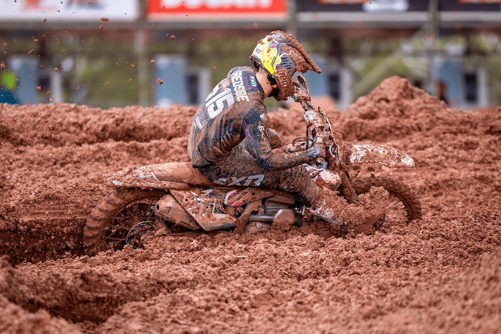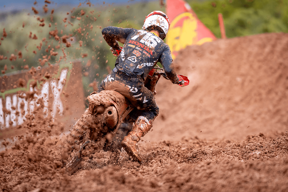 Dopo aver superato Van Erp al secondo giro, Petit ha imposto il proprio ritmo, dimostrando grande padronanza sul fango. Il francese ha progressivamente allungato, chiudendo con un vantaggio di 41 secondi su Garcia, conquistando così la sua prima vittoria in carriera nell’EMX250.