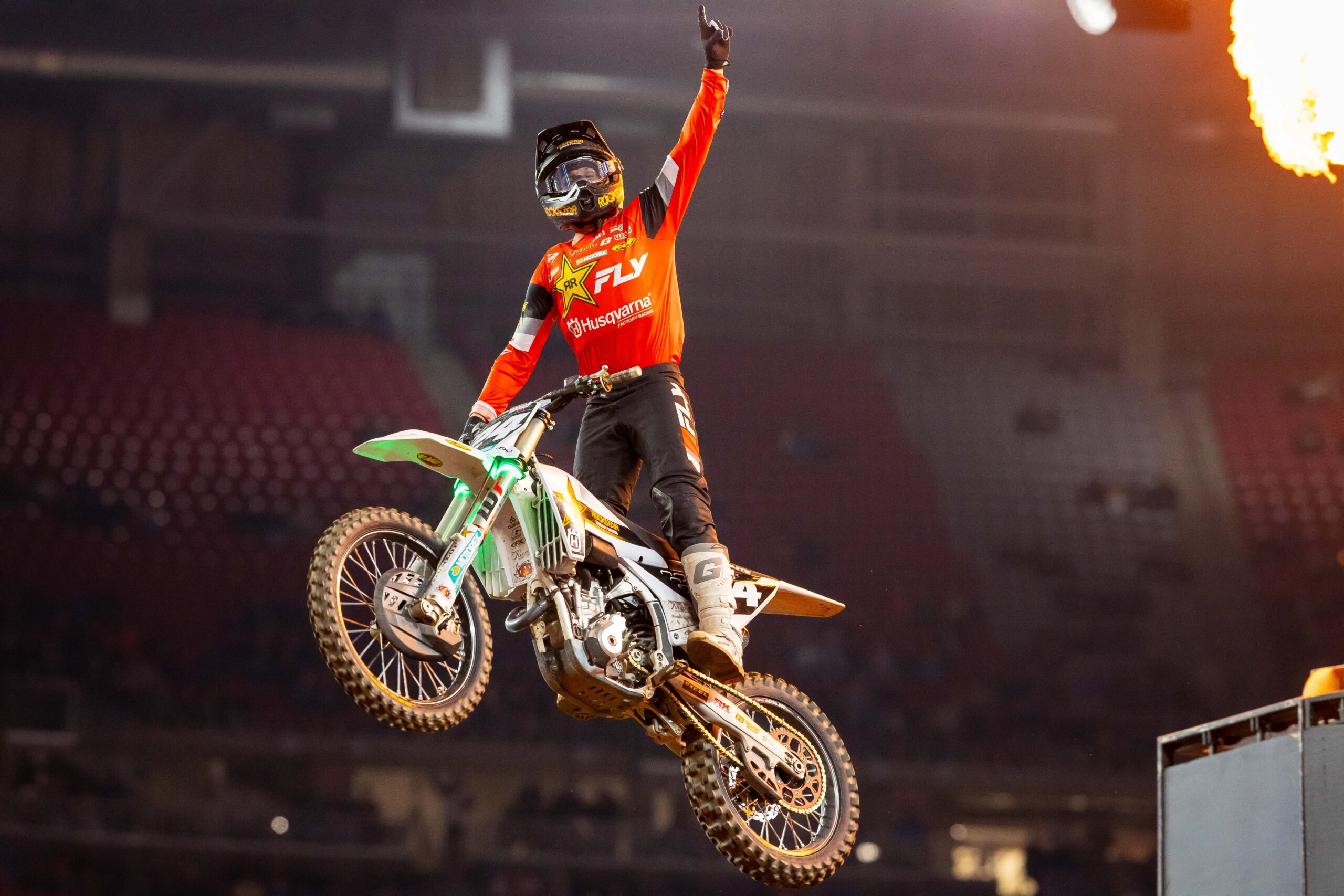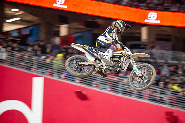 Il contendente della 450SX Stewart ha strappato il sesto tempo in qualifica nell’enorme State Farm Stadium, per poi chiudere con un convincente secondo posto nella sua Heat Race e portare così la sua Husqvarna FC 450 Rockstar Edition direttamente in finale.