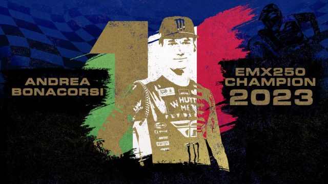 Il pilota dell’Hutten Metaal Yamaha Official EMX250, Andrea Bonacorsi, ha conquistato il titolo EMX250 2023 con una straordinaria vittoria nella nona e penultima tappa del Campionato Europeo ad Afyonkarahisar, in Turchia. La campagna per il titolo EMX250 di Bonacorsi è stata eccezionale, con un record del 100% di podi, comprese quattro vittorie complessive e sei vittorie nelle gare.