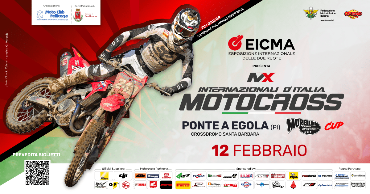 Gli organizzatori del primo round degli Internazionali d’Italia Motocross Eicma Series 2023, ovvero il locale Moto Club Pellicorse e il promotore Off Road Pro Racing, annunciano l’apertura ufficiale delle prevendite dei biglietti per la classicissima di questo ambito campionato di inizio stagione, che nel 2023 si aprirà dalla Toscana il 12 febbraio prossimo dal circuito sanminiatese Santa Barbara, già teatro in passato di eventi mondiali e internazionali.