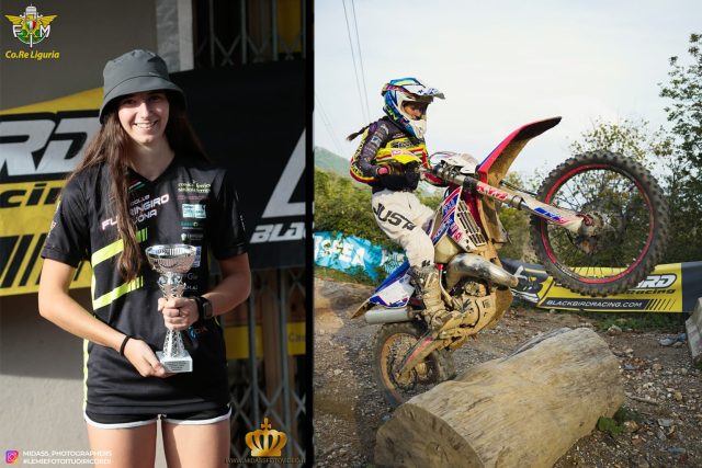 “Ho iniziato a disputare le gare quando avevo circa 6 anni, a 14 anni ho deciso di praticare unicamente l’enduro, ho vinto 4 volte il campionato regionale Ligure Enduro classe Femminile, 4a all’italiano Under e Coppa Italia nel 2022, e la partecipazione ad una prova di campionato europeo in Germania”.