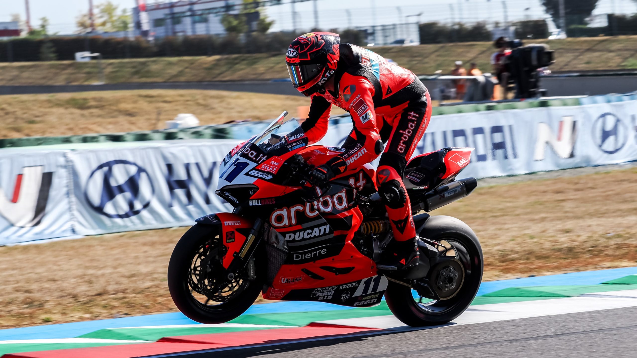Magny-Cours, Francia – Spettacolare testa a testa in Francia tra i due contendenti al titolo mondiale. Nicolò Bulega (Aruba.it Racing – Ducati) ha resistito alla pressione di Stefano Manzi (Ten Kate Racing Yamaha) e ha conquistato la Gara 1 del Round Pirelli di Francia del Campionato del Mondo FIM Supersport al Circuit de Nevers Magny-Cours, guadagnando altri cinque preziosi punti nella sua lotta per il titolo mondiale. I due hanno preceduto Valentin Debise (GMT94 Yamaha), che in Francia di fronte al suo pubblico ha ottenuto il suo primo podio nel WorldSSP.