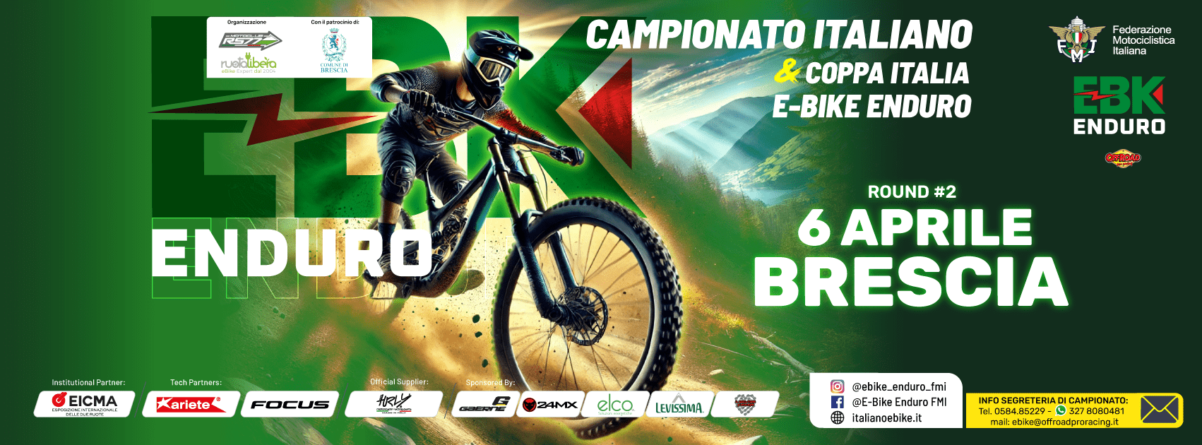 Brescia – Dopo la spettacolare apertura del 2 marzo in Liguria, il Campionato Italiano E-Bike Enduro FMI si sposta in Lombardia, con il secondo round della stagione in programma il prossimo 6 aprile a Brescia. L’evento sarà organizzato dal Motoclub RS 77 e si preannuncia altamente competitivo.