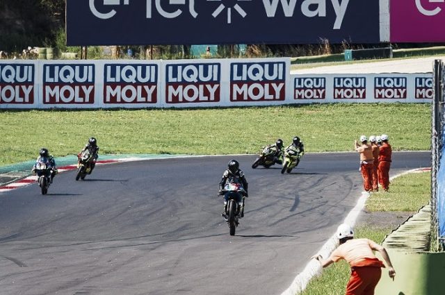 Moto3: Perez Selfa non ha rivali. Il pilota 2WP GP Project ha fatto doppietta, andando a vincere anche alla domenica nello stesso modo di ieri: dominando dall’inizio alla fine e tagliando il traguardo con 26 secondi di vantaggio sugli inseguitori. Alle sue spalle è stata bagarre a quattro per le restanti posizioni di vertice. Una lotta conclusasi solo al fotofinish, con Erik Michielon (BeOn Pos Corse) bravo ad avere la meglio e a conquistare il suo primo podio in Moto3. Terza posizione per Leonardo Abruzzo (BeOn AC Racing) con Cristian Lolli (BeOn Cecchini) quarto e Michele Amadori (BeOn Renzo Sandroni) quinto. In classifica generale Perez Selfa è leader con 133 p. davanti ad Abruzzo con 80 p. e Lolli con 71 p.