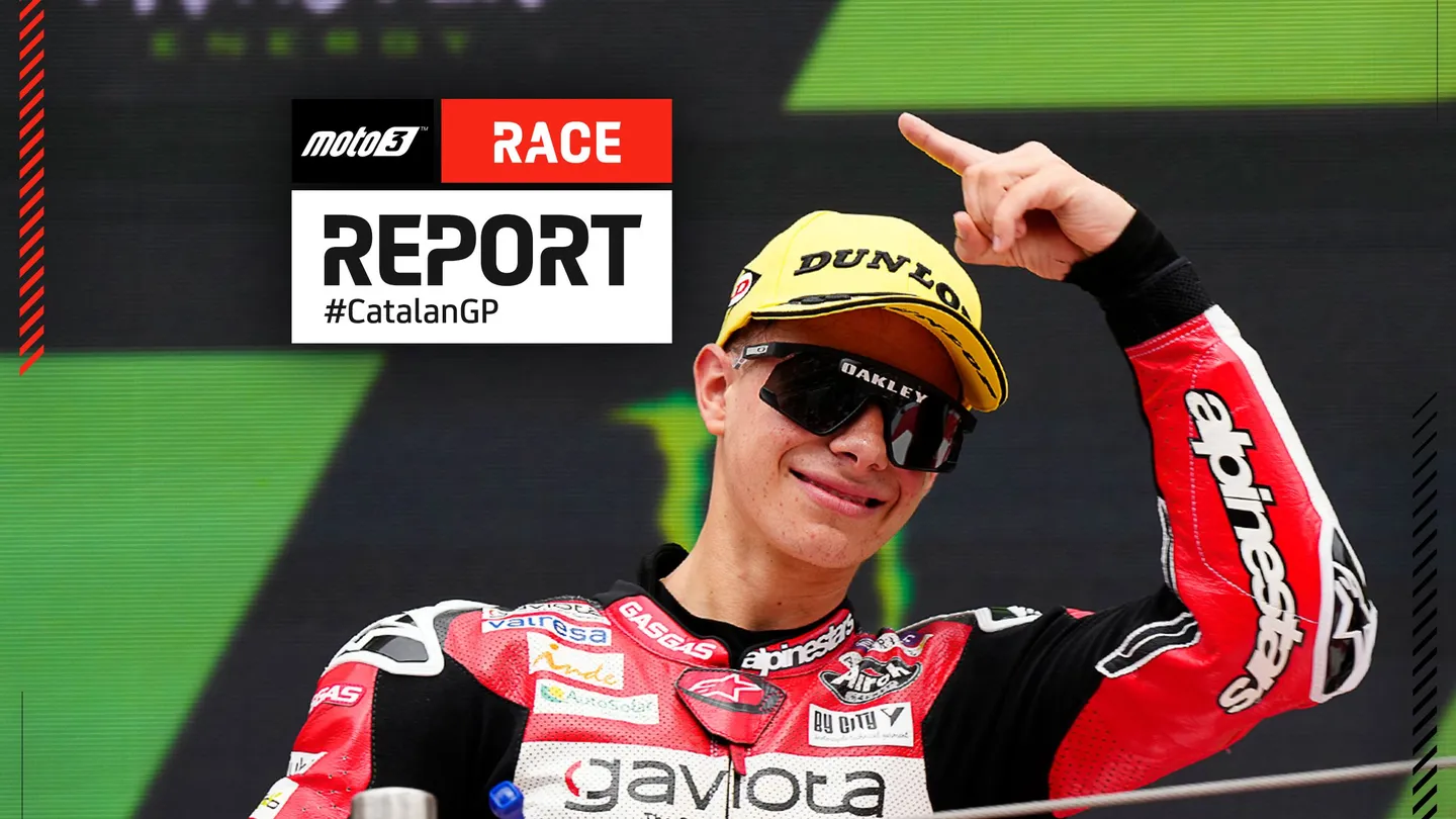 La gara di Moto3™ al Circuit de Barcelona-Catalunya è stata una prova mozzafiato con sorprese e colpi di scena in ogni curva. Il rookie colombiano David Alonso del GASGAS Aspar Team ha conquistato la vittoria in una finale al cardiopalma, mentre il leader del campionato, Daniel Holgado del Red Bull KTM Tech3, è caduto all’ultimo giro.