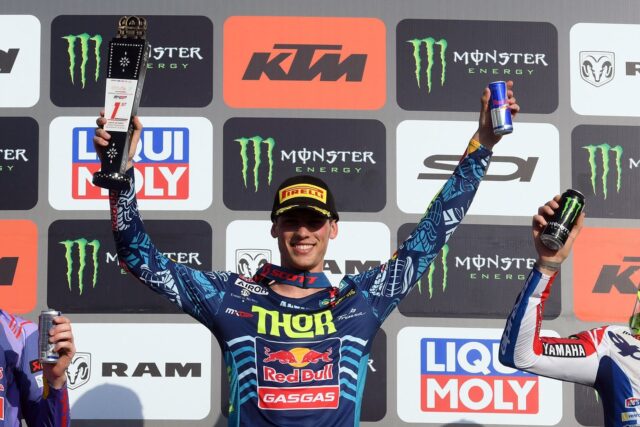 Nella successiva manche di qualifica Jorge è scattato al via subito a ridosso dei primi, e nel corso della manche è riuscito a rimontare fino alla seconda posizione. La domenica Prado (GasGas MC 450 F) è stato capace di regalare alla squadra l’ennesima soddisfazione, riuscendo a salire sul gradino più alto del podio della massima categoria grazie al secondo posto in gara uno e il primo posto in una gara due, pur più complicata da un tracciato piuttosto fangoso, perché durante la pausa è stata bagnato. Nella classifica di giornata a pari punti con l’olandese Herlings, Prado vince il GP per la discriminante del miglior risultato di gara due. Prado raccoglie la settima vittoria di GP su undici prove disputate e in campionato è sempre secondo, ma riduce di 15 punti il distacco dal primo, lo sloveno Gajser, che ha ora ventidue punti di vantaggio.
