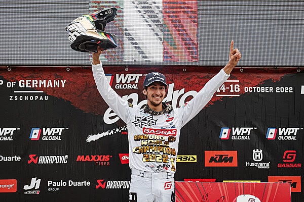 Andrea Verona: “Questo in Germania è stato un weekend pazzesco e una fantastica chiusura di stagione. Vincere il titolo ieri ha significato raggiungere il risultato più a cui ambivo per me, ma anche per il team, e non ci siamo ancora del tutto resi conto di quel che è successo. La stagione è finita oggi con un’altra ottima giornata di gara: terzo in EnduroGP e primo in Enduro1, sono contento di chiudere in bellezza. Ora con il team ci godremo il momento, ci prenderemo un po’ di riposto e poi inizieremo a lavorare per il 2023”.