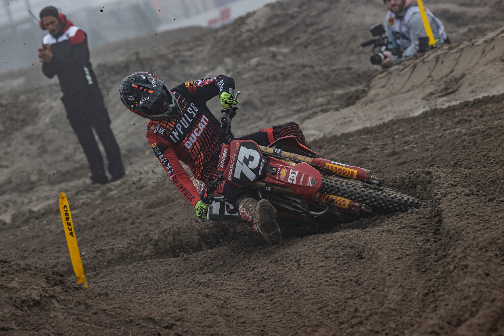 Weekend più complicato in MX1 per Andrea Bonacorsi. Il pilota ha comunque mostrato buone sensazioni sin dal mattino, ottenendo il settimo miglior tempo nelle prove cronometrate. In gara 1 è partito bene, ma è rimasto chiuso alla prima curva, scivolando fuori dalla top 10. Risalito rapidamente fino alla nona posizione, è stato però costretto al ritiro all’ottavo giro a causa di un problema tecnico. In via precauzionale, il team ha deciso di non schierare la Desmo450 MX #132 nella seconda manche.