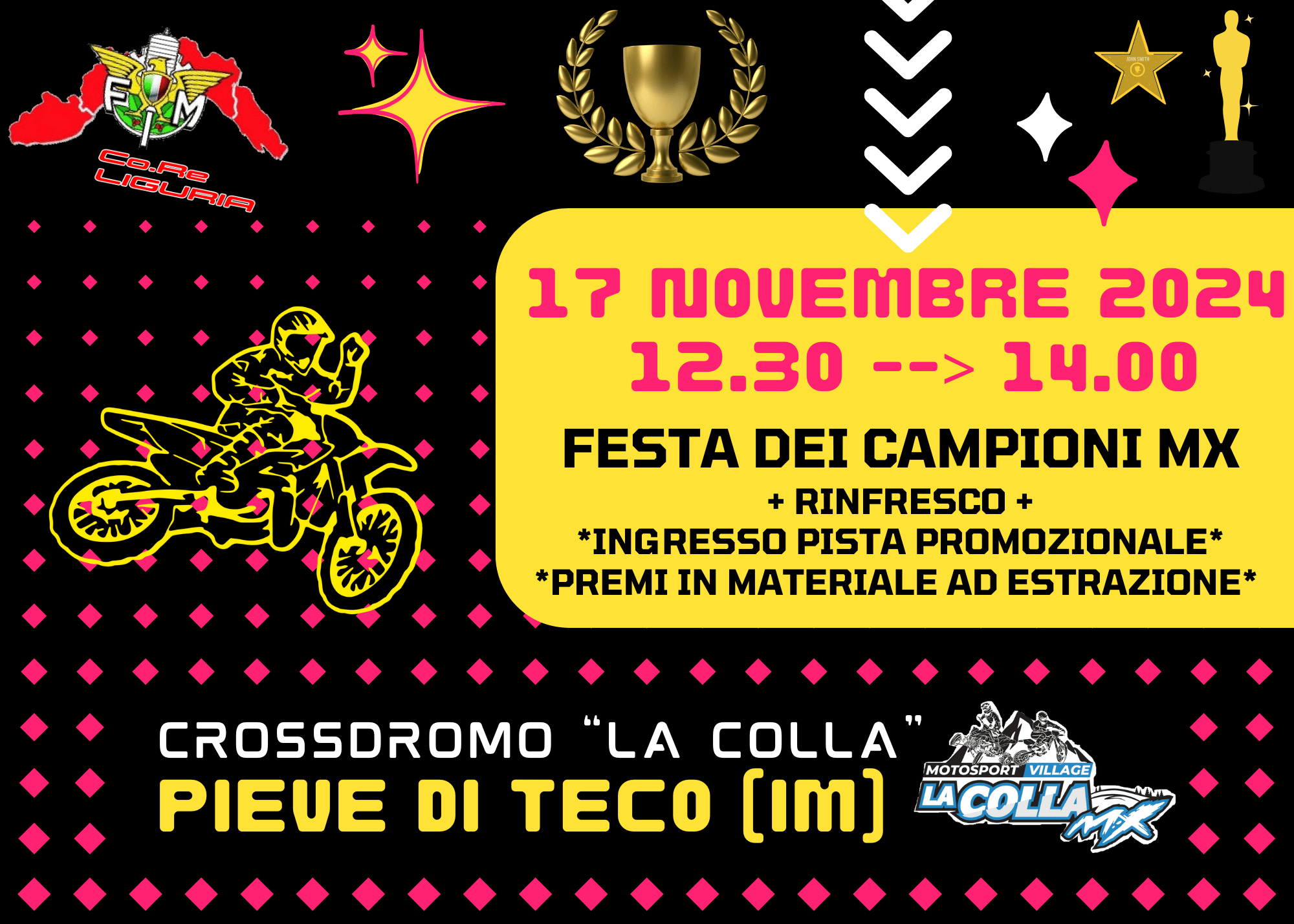 Non mancate a questa occasione di festa per celebrare l’impegno e la passione dei piloti liguri in una cornice spettacolare e all’insegna del motocross!
