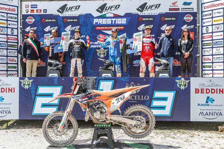 Dopo l’intensa tappa marchigiana, il Prestige 24MX si prende ora una pausa estiva. Il prossimo appuntamento è fissato per il 30 e 31 agosto a Castiglione del Lago (PG), quinta e penultima tappa della stagione, dove la lotta per il titolo in tutte le categorie è più accesa che mai.