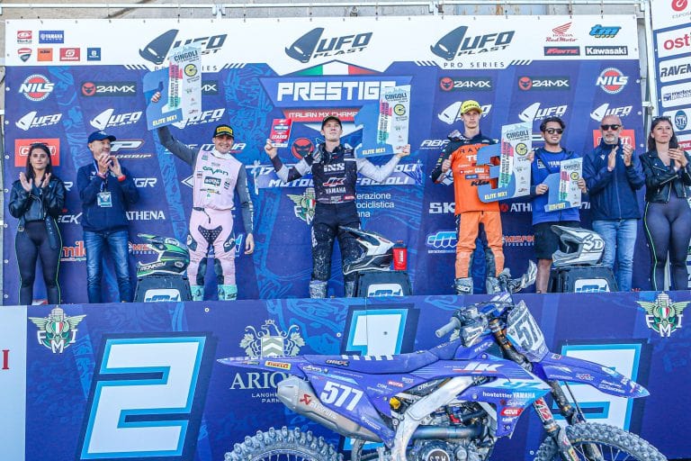 In gara-2 è proprio Ivo Monticelli (Kawasaki – MC Fagioli) a conquistare l’holeshot Pro Grip, ma Gifting, implacabile, lo riacciuffa e lo supera, volando verso la vittoria. Emozionante la rimonta di Jan Pancar (KTM), che dopo una caduta nelle prime fasi riesce a recuperare fino al secondo posto, superando Monticelli all’ultima curva. Chiudono la top five Soubeyras e Croci.