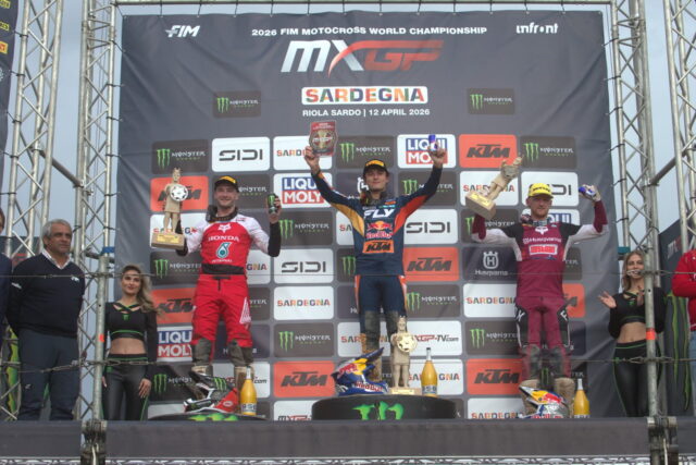 Riola Sardo (OR), 12 aprile 2026 – Un brusco calo delle temperature ha caratterizzato la giornata conclusiva del Gran Premio della Sardegna MXGP 2026, con vento e nuvole a fare da protagonisti sul circuito “Le Dune” di Riola Sardo. Nonostante le condizioni meteo instabili, lo spettacolo in pista non è mancato, regalando gare combattute e grande coinvolgimento per il pubblico presente.