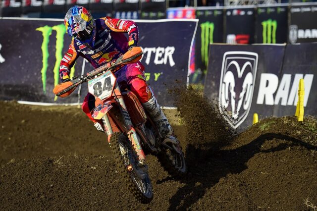 MXGP: Nella classe regina, Jeffrey Herlings del Red Bull KTM Factory Racing ha conquistato la sua prima vittoria dell’anno nella Gara di Qualifica Ram, dopo aver superato Tim Gajser del Team HRC al quarto giro e aver resistito a un’accanita rincorsa del campione del mondo in carica Jorge Prado, che ha ottenuto il secondo posto per il Red Bull GASGAS Factory Racing.