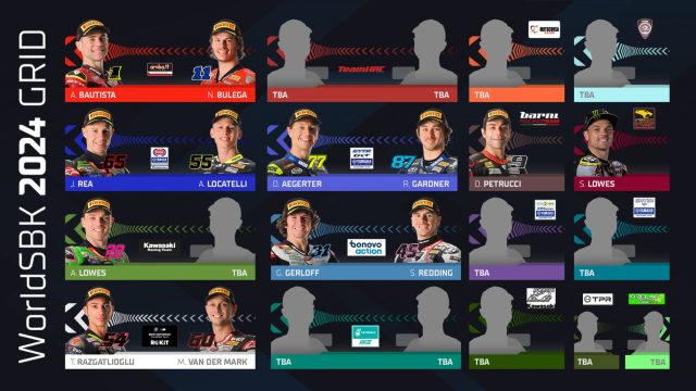 A eccezione di Garrett Gerloff, Scott Redding, Dominique Aegerter, Remy Gardner, Sam Lowes e Danilo Petrucci (Barni Spark Racing Team), tutti gli altri piloti indipendenti stanno cercando di rinnovare i loro contratti. Lorenzo Mauri, Team Manager di Motocorsa Racing, ha dichiarato di desiderare schierare due moto nel 2024. Nel Team GoEleven, il Team Manager Denis Sacchetti non ha escluso la possibilità di avere Andrea Iannone come pilota. Gigi Dall’Igna, General Manager di Ducati, sembra contento del fatto che Iannone farà parte di uno dei team indipendenti Ducati nel WorldSBK. In questa stagione, vedremo piloti provenienti da vari campionati, tra cui MotoGP™, British Superbike, MotoAmerica, MotoE™ e ovviamente World Supersport, collegarsi al WorldSBK.