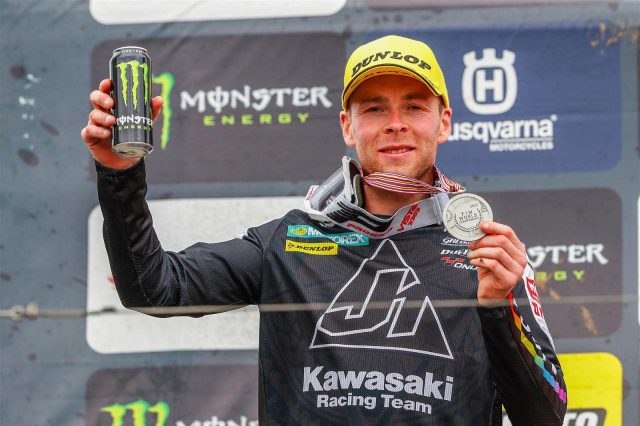Il pilota del Kawasaki Racing Team MXGP, Romain Febvre, ha chiuso la sua annata da medaglia d’argento nel Campionato del Mondo FIM di Motocross MXGP con il suo tredicesimo podio della stagione nel GP britannico a Matterley Basin.