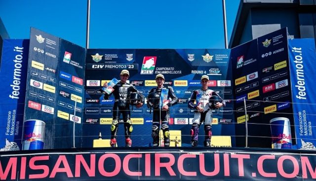 Premoto3 – Bagarre a non finire nella entry class del CIV, con tanti piloti a battagliare per la prima posizione. In una gara con diverse penalità per track limit che hanno determinato una classifica finale diversa rispetto all’ordine con il quale i piloti di testa sono transitati sotto la bandiera a scacchi. Alla fine la vittoria è andata ad Edoardo Liguori (2WP Pasini), quarto successo stagionale per lui. Seconda posizione, a 11 millesimi da Liguori, per il poleman Edoardo Boggio (Bucci Moto) con Leonardo Zanni (M&M) a chiudere il podio. Un terzetto di testa composto tutto da Pata Talenti Azzurri FMI. In classifica generale Liguori è in testa con 156 p. davanti a Gabriel Tesini (6° in gara) con 85 p. e Pierfrancesco Venturini (4° in gara) a 80 p. Entrambi compagni di team nell’AC Racing Brevo.