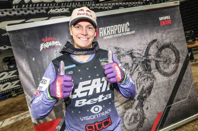 Sulla sua RR 300 2T Racing, Walker ha dato spettacolo fin dalla partenza, conquistando la pole position nella Super Pole con un tempo che ha lasciato il segno. Nella prima manche di gara, ha mantenuto un ritmo impressionante, piazzandosi al secondo posto e dimostrando una volta di più la sua abilità sul terreno impegnativo del Superenduro.