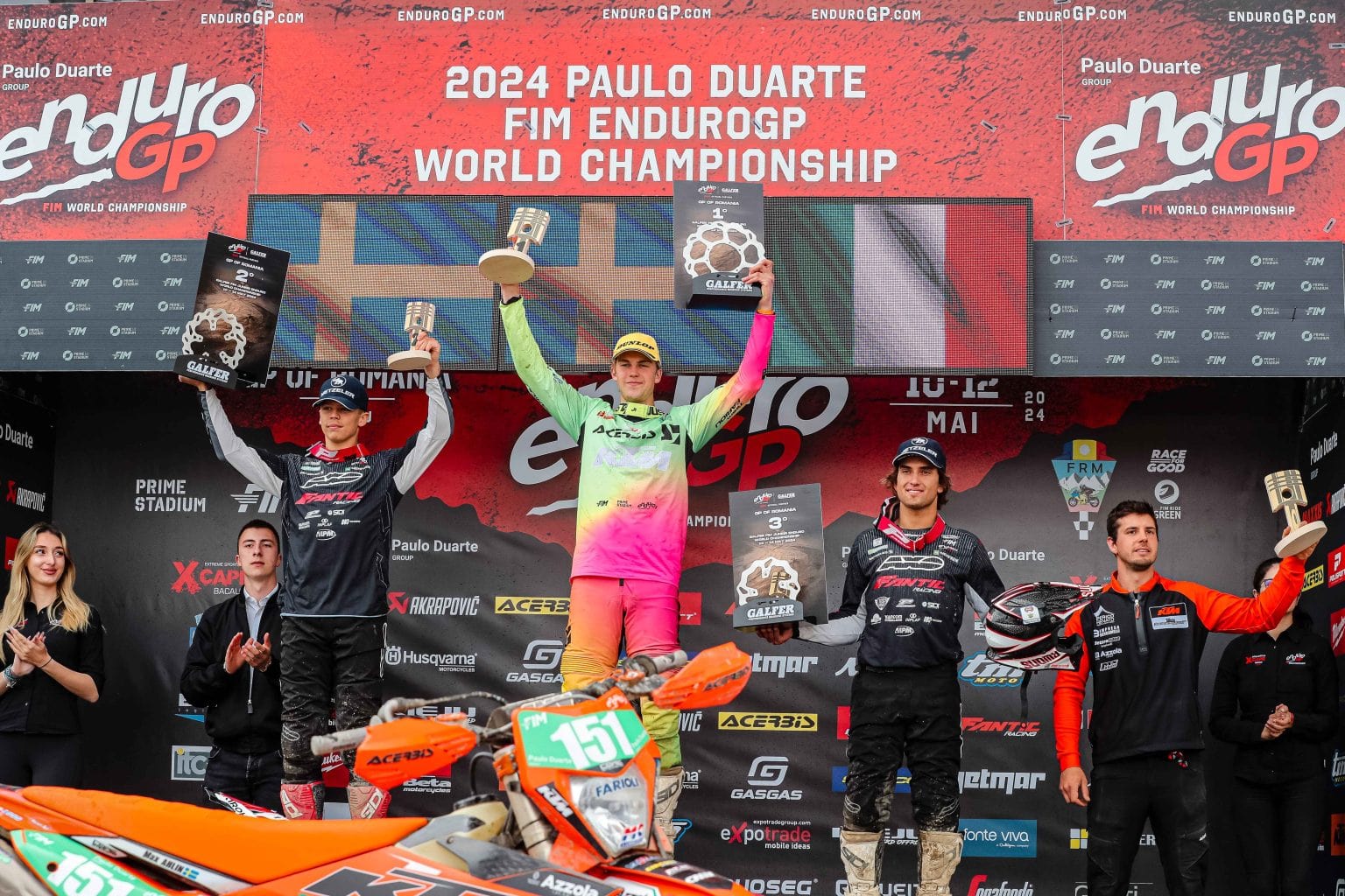 La categoria Enduro Youth ha visto Alberto Elgari della TM MOTO sfrecciare verso la sua seconda vittoria del weekend. L’italiano è stato inarrestabile, vincendo con 57 secondi di vantaggio. Pietro Scardina della Fantic ha ottenuto il suo primo podio dell’anno con il secondo posto, mentre Alex Puey della Beta ha completato la top three.