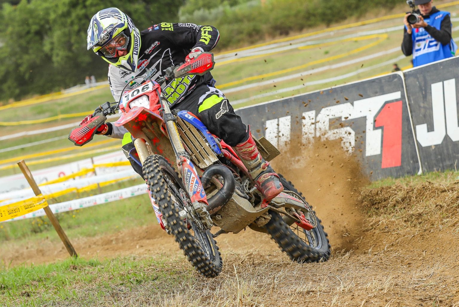 Era battaglia aperta già da prima della gara tra Andrea Gheza (GasGas Sissi Racing) e Matteo Grigis (GasGas), a pari punti nel campionato, ma è proprio quest’ultimo a portarsi in vantaggio già dal Supertest, vincendo infine la classe Junior 300, mentre il rivale rimane al secondo posto. Terzo posto per Alberto Ladini (GasGas) dopo il sorpasso su Alessio Bonetta (Husqvarna) all’inizio del secondo giro.
