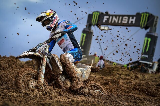 Mathis Valin, autore del miglior tempo nelle prove cronometrate del sabato con Kawasaki Racing Team MX2, si trovava in quarta posizione fino a una caduta all’ottavo giro che gli ha procurato un infortunio al polso, impedendogli di partecipare a Gara 2. Simon Laengenfelder ha così guadagnato la quinta posizione per Red Bull KTM Factory Racing, mentre Adamo ha chiuso nono e Coenen undicesimo. Julius Mikula ha offerto una prestazione eroica, recuperando fino all’ottavo posto, mentre Quentin Prugnieres ha impressionato con il settimo posto per WZ-Racing KTM.