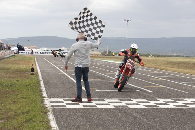 Lukas Hollbacher si aggiudica con la pioggia gara-1 del mondiale Supermoto in Sardegna