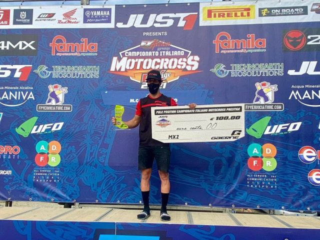 Nella MX2 il più veloce è Nicholas Lapucci (Fantic – Over Competition), che sfrutta il vantaggio di essere sceso in pista per primo, quando ancora il terreno è asciutto. Il toscano ferma il cronometro in 1’43”132 e si aggiudica la pole position Gaerne. Nell’altro gruppo, in azione con la pista già fangosa, il miglior tempo è di Kevin Horgmo (Gas Gas – Sm Action Yuasa Battery) in 1’51”210.
