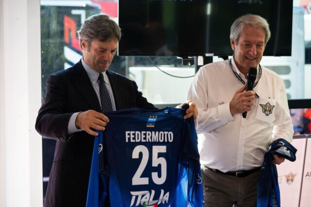 Presentata ufficialmente al Mugello in occasione del GP d’Italia, la Maglia Azzurra FMI 2025 è pronta a scendere in pista. La nuova divisa della nazionale italiana fuoristrada è stata svelata dal presidente Giovanni Copioli insieme a Matteo Zoppas, presidente di ICE – Agenzia per la promozione all’estero, che condivide la missione di valorizzare il Made in Italy anche attraverso lo sport.