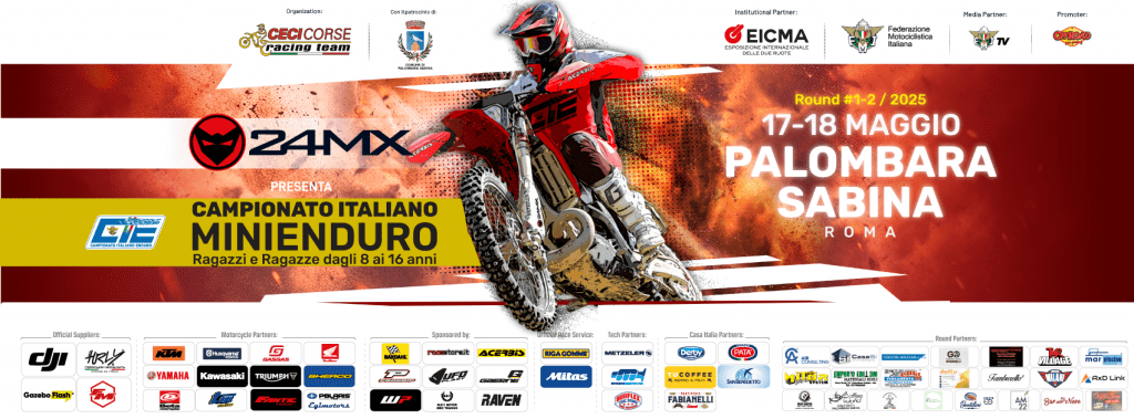 PALOMBARA SABINA – Il Campionato Italiano MiniEnduro 24MX Series 2025 parte con il piede giusto dal suggestivo borgo di Palombara Sabina, in provincia di Roma. Sono ben 174 i piloti iscritti a questo primo appuntamento stagionale, articolato su due intense giornate di gara, sabato 17 e domenica 18 maggio, che aprono ufficialmente la nuova annata dedicata alle giovani promesse dell’enduro italiano.