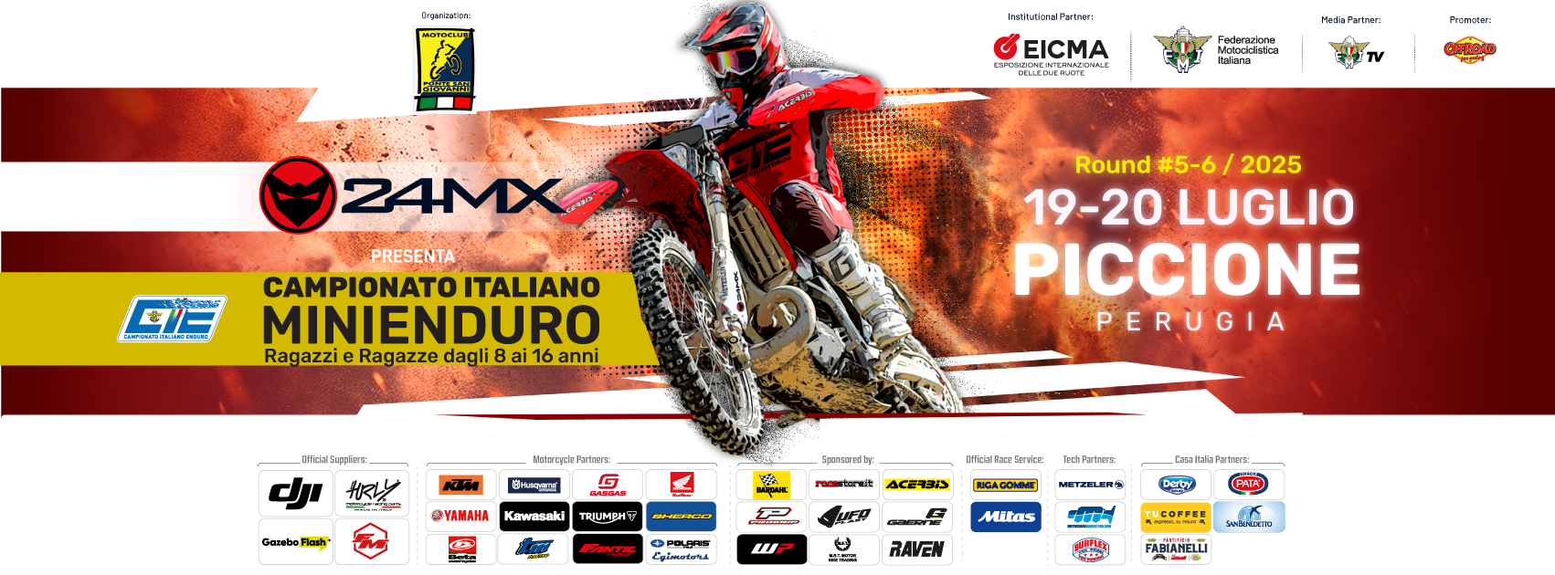 Il sipario sta per alzarsi sull’ultimo, attesissimo appuntamento del Campionato Italiano Minienduro 24MX Series 2025, che nel weekend del 19 e 20 luglio approda nel suggestivo borgo umbro di Piccione, in provincia di Perugia. Un doppio round che si preannuncia infuocato, con i titoli ancora tutti da assegnare in numerose classi e oltre 170 giovani talenti pronti a sfidarsi su due prove speciali tecniche e selettive.