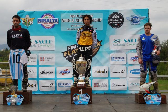 La terza prova valida per il campionato del mondo di Flat Track, organizzata dalla Federazione Internazionale Motociclistica in collaborazione con il Moto Club Bisalta Drivers Cuneo, in programma sul Bisalta Motorpark per sabato 16 settembre, è stata sospesa nel corso della quinta delle sedici manche, a causa di un violento scroscio di pioggia, che ha reso il terreno di gara impraticabile.