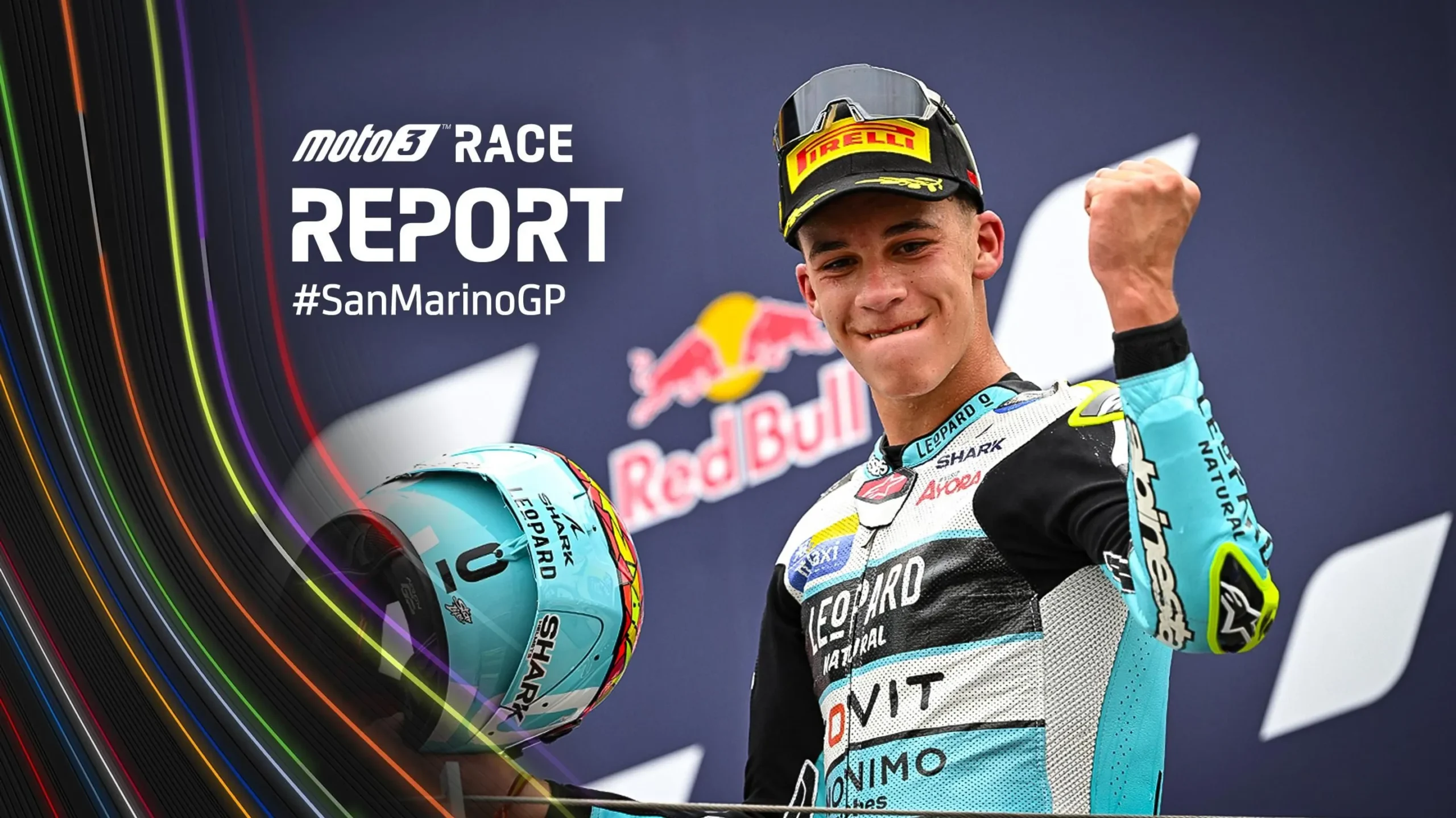 Al Gran Premio di San Marino e della Riviera di Rimini, Angel Piqueras (Leopard Racing) ha offerto una delle prestazioni più spettacolari della stagione, ottenendo la sua prima vittoria in Moto3. Dopo aver subito una penalità con doppio Long Lap, il giovane pilota spagnolo è riuscito a recuperare dalla 17ª posizione per poi tagliare il traguardo davanti a Daniel Holgado (Red Bull GASGAS Tech3) e Ivan Ortola (MT Helmets – MSI), vincendo per appena 0,035 secondi.