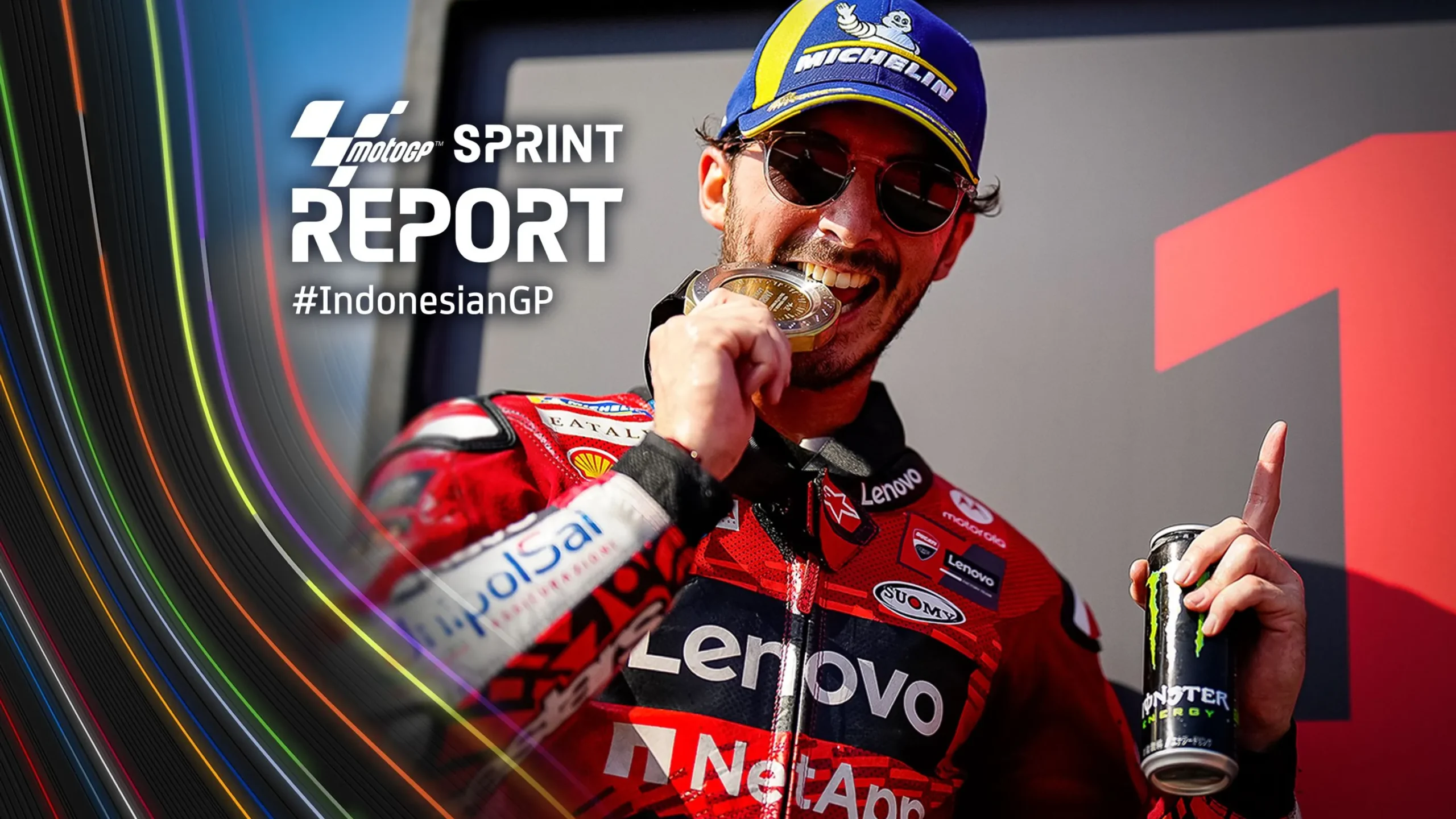 Francesco Bagnaia (Ducati Lenovo Team) ha dominato la Tissot Sprint del Gran Premio di Indonesia, conquistando una vittoria cruciale che riduce drasticamente il vantaggio di Jorge Martin (Prima Pramac Racing) nella classifica generale. Con una prestazione impeccabile, il campione del mondo in carica ha concluso i 13 giri della gara con soli 0,107 secondi di vantaggio su Enea Bastianini, mentre Marc Marquez (Gresini Racing MotoGP™) ha completato il podio con una gara solida.