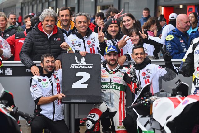 Siamo partiti forte con delle belle prove in MotoE di entrambi i Kevin, poi proseguite con una gara epica sotto l’acqua di Manfredi che ci ha portati sul 2º gradino del podio. La seconda volta quest’anno.