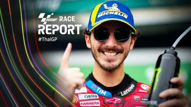 BURIRAM, 27 OTT. – Francesco Bagnaia si impone con maestria nel GP della Thailandia, riportandosi così sotto nella corsa al titolo mondiale. Sul circuito di Buriram, la pioggia ha reso la gara insidiosa e imprevedibile, ma “Pecco” ha saputo mantenere la concentrazione e il controllo, nonostante gli attacchi di un agguerrito Marc Marquez. Lo spagnolo, determinato a dare tutto sotto la pioggia, ha provato più volte a passare Bagnaia, ma un errore alla curva 8 lo ha costretto alla caduta, chiudendo l’inseguimento al titolo mondiale.