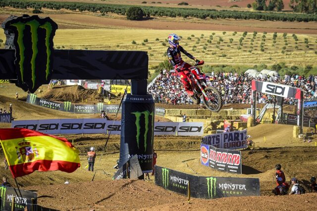 Il pilota di casa Jorge Prado (Red Bull GASGAS Factory Racing) ha dominato la manche di qualifica della MXGP, partendo dalla pole con un holeshot impeccabile e mantenendo la prima posizione fino alla bandiera a scacchi. Questa vittoria lo avvicina ulteriormente alla conquista del secondo titolo mondiale consecutivo, proprio davanti al suo pubblico. Prado ha tenuto a distanza il rivale Jeffrey Herlings (Red Bull KTM Factory Racing), che ha tentato di rimontare fino all’ultimo, ma ha dovuto accontentarsi del secondo posto, staccato di poco più di un secondo.
