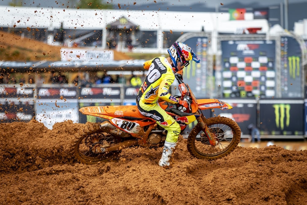 Nel fango di Águeda ha brillato anche Andrea Adamo (Red Bull KTM Factory Racing), autore di una partenza magistrale e di una condotta di gara perfetta nella Qualifying Race MX2. L’italiano, campione del mondo in carica, ha sfruttato al massimo un’ottima uscita dal cancelletto, portandosi subito al comando davanti ai compagni di marca Sacha Coenen e Liam Everts (Nestaan Husqvarna Factory Racing), quest’ultimo vincitore nel 2024 proprio in Portogallo.