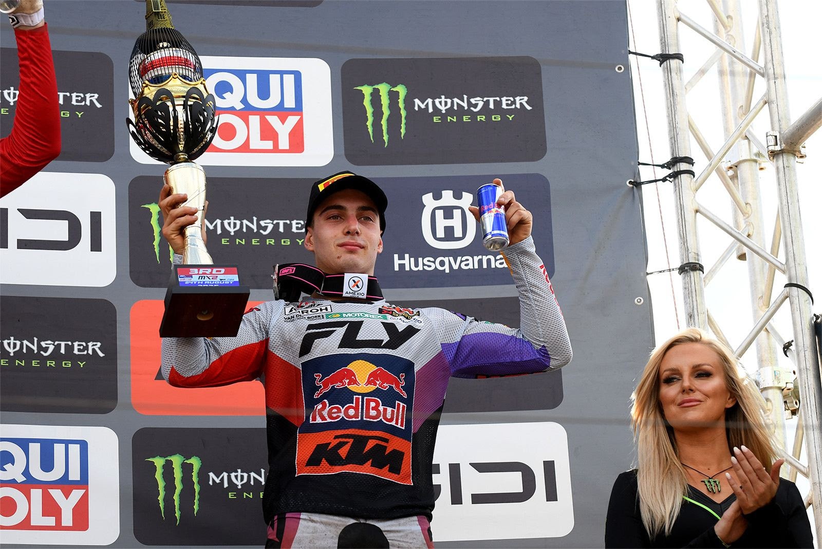 Nella MXGP Lucas Coenen (KTM 450 SX-F) riprende la sua marcia di avvicinamento al primo posto in campionato con un weekend non perfetto ma fruttuoso. Terzo nelle libere, secondo nelle cronometrate il giovane belga fa quarto in qualifica nonostante un paio di sbavature. La Domenica in gara uno è frenato dalla caduta di gruppo alla prima curva ed è intorno alla ventesima posizione quando inizia a prendere un gran ritmo che lo porta fino alla seconda posizione finale. E’ ancora una grande rimonta in gara due che gli permette da metà gruppo a ripetere il secondo posto di gara uno, con la soddisfazione di salire sul secondo gradino del podio alle spalle di Jeffrey Herlings (KTM); per Lucas è il dodicesimo podio stagionale. In campionato Lucas è sempre secondo, ma ha accorciato a trentuno punti il gap dal leader provvisorio, il francese Romain Febvre.