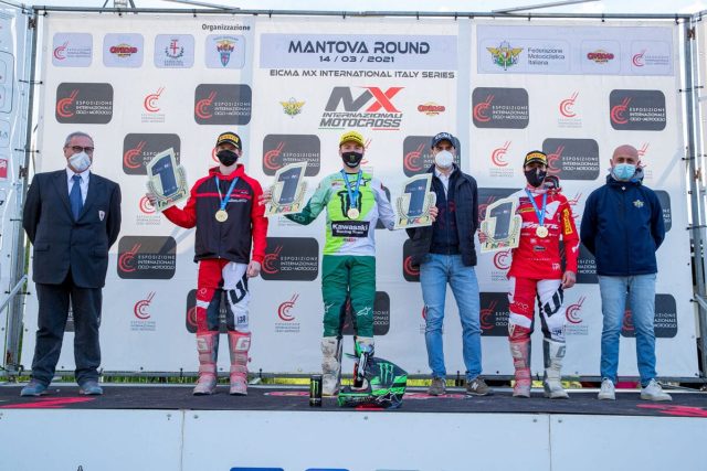 MX1. In questa gara di Mantova la “Newfren – Pole Position” va a Jorge Prado (Red Bull Ktm Factory Racing) che nella prima curva purtroppo fa spegnere la sua moto, ripartendo ultimo. Ivo Monticelli (Monster Energy Kawasaki Racing Team) scatta velocissimo e conquista sia “EICMA – Hole Shot” che il “Best Lap – 24MX”. Il pilota italiano nei primi giri viene attaccato dal suo compagno di squadra Romain Febvre (Monster Energy Kawasaki Racing Team) che lo passa e allunga su tutti fino alla bandiera a scacchi.