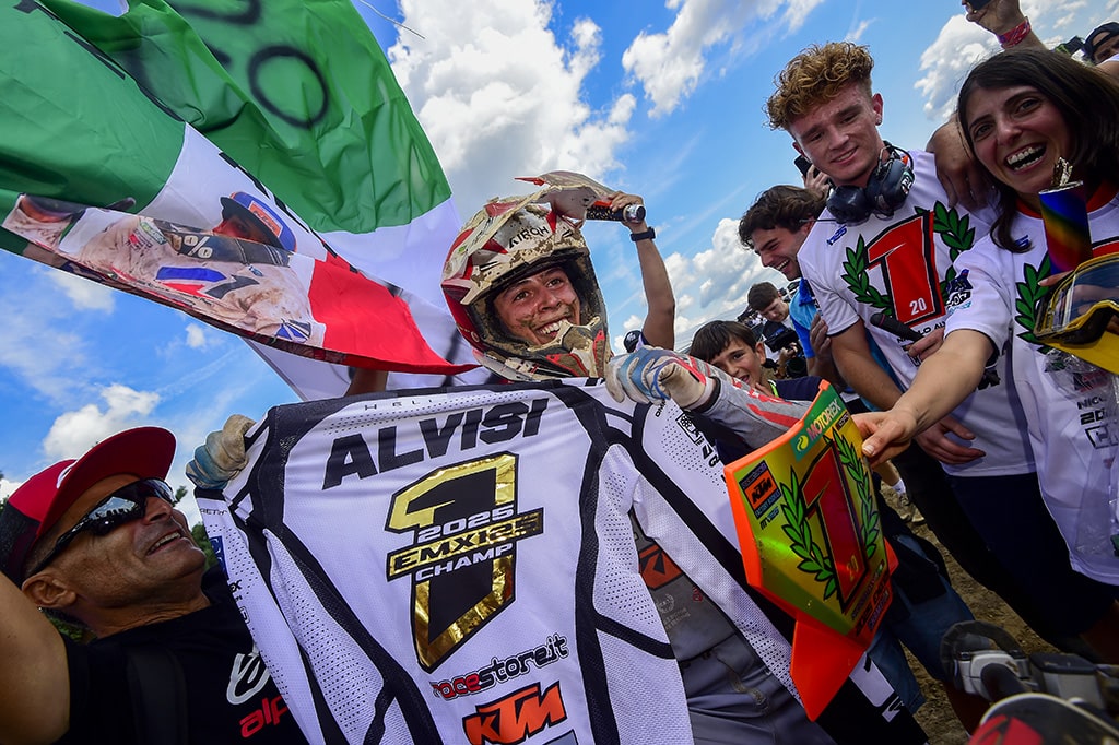 Lommel (Fiandre, Belgio), 3 agosto 2025 – Il round finale del Campionato Europeo EMX125 Presented by FMF Racing ha offerto uno spettacolo indimenticabile sulla sabbia profonda e impietosa di Lommel. La battaglia per il titolo si è giocata fino all’ultima curva tra Nicolò Alvisi (Racestore KTM Factory Juniors) e il rivale Mano Faure (Yamaha Europe EMX125 MJC), separati da soli sei punti prima del via. Alla fine, è stato il giovane italiano a mantenere i nervi saldi nei momenti decisivi, conquistando il titolo continentale 2025 al termine di una stagione ricca di colpi di scena e prestazioni di carattere.