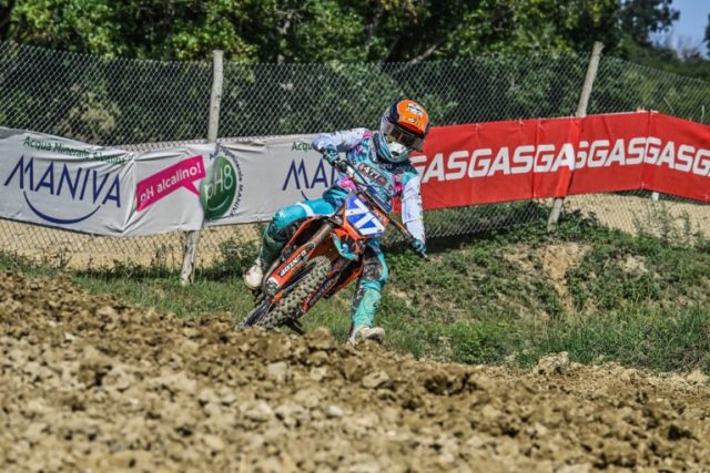 La grande favorita Giorgia Montini (Kawasaki – Gaerne) ha ottenuto la pole position nella gara di casa del suo team, ma poi è caduta durante la gara-1 mentre era in testa ed è finita solo sesta. Emanuela Talucci (KTM – Gaerne) ha colto l’occasione e non ha commesso errori, mentre Danee Gelissen (KTM) è caduta anch’essa ma ha chiuso dietro l’abruzzese. Terza è stata Priska Busatto (KTM – Dirtbike racing team) dopo una partenza eccezionale.