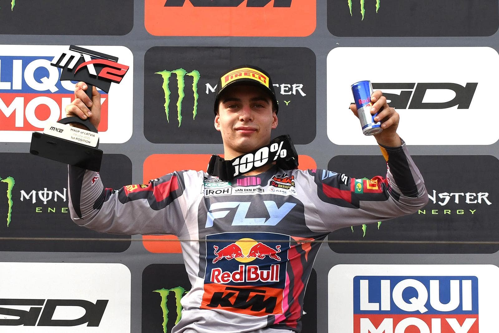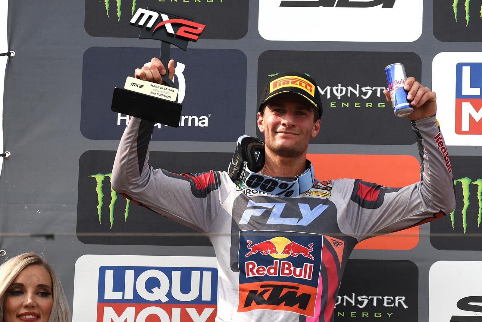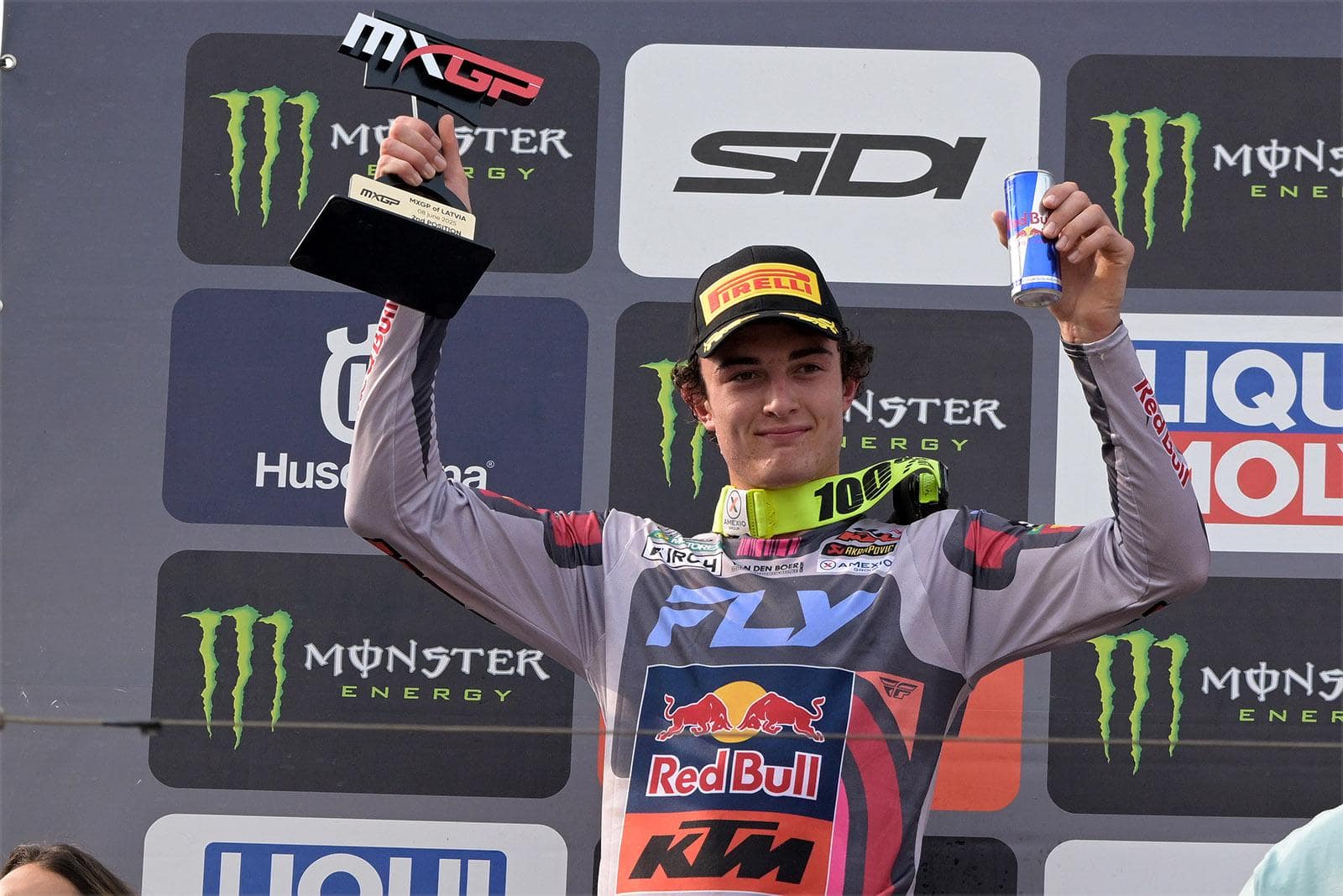 Undicesima prova del Mondiale Motocross MXGP. il Gran Premio di Lettonia si è disputato sulla pista di Kegums, caratterizzata da un fondo sabbioso. Per il team Red Bull KTM Factory Racing – De Carli ancora una trasferta con risultati eccellenti, e addirittura tutti e tre i piloti sul podio: nella massima categoria (MXGP) Lucas Coenen ha conquistato il suo settimo podio stagionale, e nella MX2 vittoria per Sacha Coenen (quarto podio stagionale) e secondo posto per Simon Langenfelder che col suo sesto podio stagionale si prende la tabella rossa di leader, contribuendo all’impressionante palmares di KTM in questa stagione che negli undici Gran Premi disputati ha vinto quattro volte nella MXGP e sette volte nella MX2.