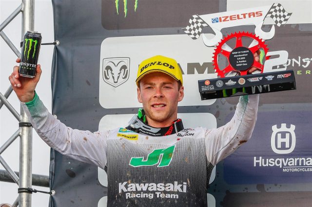 Romain Febvre ha commentato: “Non ho mai avuto una buona sensazione per questo tracciato in tutti gli anni in cui siamo venuti qui; penso che sia solo la seconda volta che salgo sul podio. Ieri non mi sentivo a mio agio, ma ho sempre guidato meglio in gara rispetto alle prove cronometrate e sono riuscito a ribaltare la situazione oggi. Ci sono stati molti colpi di scena alle prime due curve in entrambe le manche, ma sono riuscito a uscirne terzo ogni volta. Nella prima manche ho visto che ero più veloce e avevo delle buone linee per vincere, ma nella seconda gara sono rimasto terzo tutto il tempo; sono riuscito a mantenere il distacco da Maxime, ma non ho trovato un punto dove poter fare la differenza, quindi alla fine ho dovuto accontentarmi del terzo posto. Ho guadagnato molti punti nel campionato in questo fine settimana e non è mai finita fino alla fine, ma la mia unica soluzione è vincere quello che posso e sperare che Jorge faccia errori. In ogni caso, non vedo l’ora delle ultime due tappe. Amo Maggiora, ho bei ricordi da lì, e penso che tutti si divertano in Inghilterra; è un tracciato fantastico, quindi continuiamo così.”