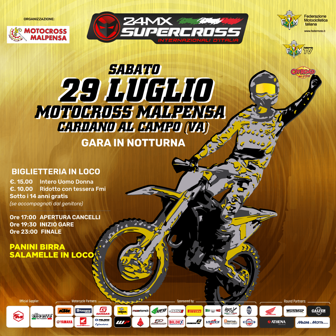 L’attesa è finita, dopo il grande successo dello scorso anno, sabato 29 luglio torna “al Ciglione” il Campionato Supercross Internazionali d’Italia sull’inedito tracciato indoor illuminato per l’evento in “notturna”.