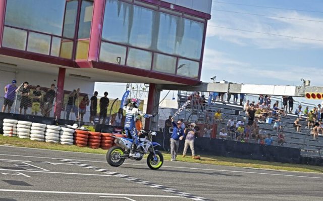 Per Elia Sammartin (TM – Gaerne), il successo era previsto fin dall’inizio. Il numero 1 della supermoto italiana, arrivato a Viterbo in testa alla classifica con un punteggio perfetto, ha conquistato altre due vittorie e si è reso matematicamente inarrivabile per i suoi due inseguitori, Luca D’Addato (TM – 8biano) e Fabrizio Bartolini (Honda – 04 park), ancora appaiati al secondo posto in classifica. Sammartin ha così ottenuto il suo quinto titolo italiano in carriera.