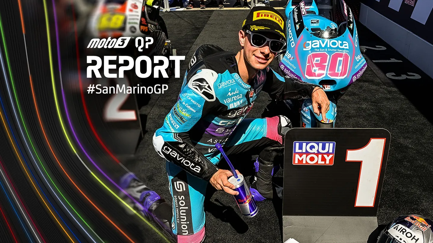 David Alonso (CFMOTO Aspar Team) ha conquistato la sua sesta pole position della stagione nelle qualifiche del Gran Premio Red Bull di San Marino e della Riviera di Rimini, classe Moto3™. Il colombiano ha fermato il cronometro a 1:40.505, confermandosi tra i principali candidati al titolo.