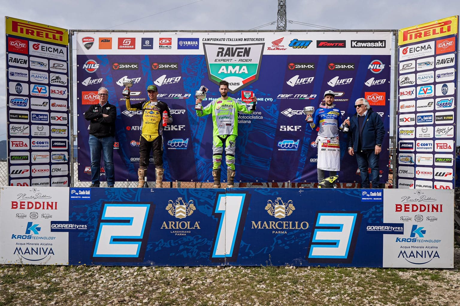 Nella classe Ama1 MX1, Marco Stella (KTM – Asiago 7C) si è imposto con una prestazione solida, conquistando la vittoria complessiva grazie a un primo e un secondo posto nelle due manche. Alex Masoner (Suzuki – Rt 973 Mx School) ha vinto gara-1, ma un sesto posto nella seconda manche lo ha relegato in seconda posizione nella classifica generale. Il terzo gradino del podio è andato a Jacopo Traini (Honda – Montegranaro), seguito da Andrea Testella (Honda – Lion Montegranaro) e Simone Malagola (Kawasaki – Rivarolese), rispettivamente quarto e quinto.