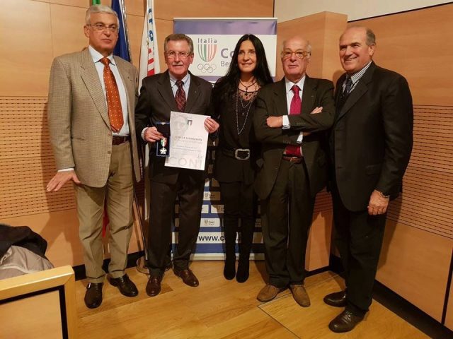 In una foto che rimarrà memoria di questo legame speciale, a sinistra vediamo Massimo Sironi e Giovanni Copioli, mentre a destra viene consegnata la Stella d’Argento al Merito Sportivo alla Scuderia Fulvio Norelli, con la presenza di Massimo Sironi e Lara Magoni, attuale Sottosegretario con delega Sport e Giovani della Regione Lombardia.
