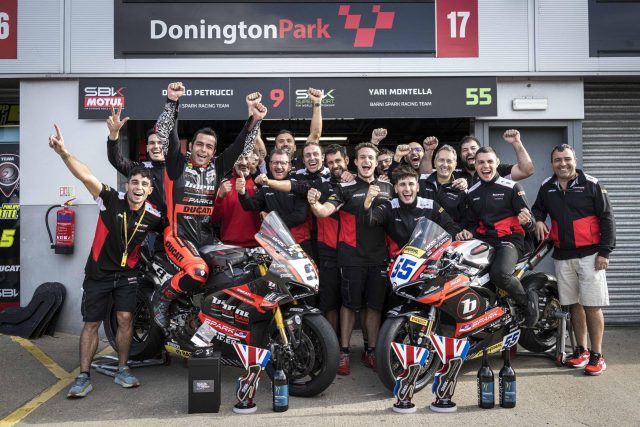 Un finale perfetto. Il weekend del Barni Spark Racing Team a Donington Park, sesto round del WorldSBK, termina con una gioia doppia e con entrambi i piloti sul podio.